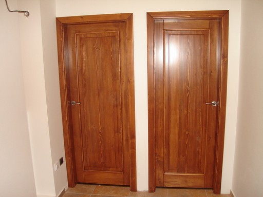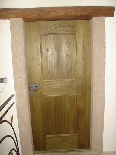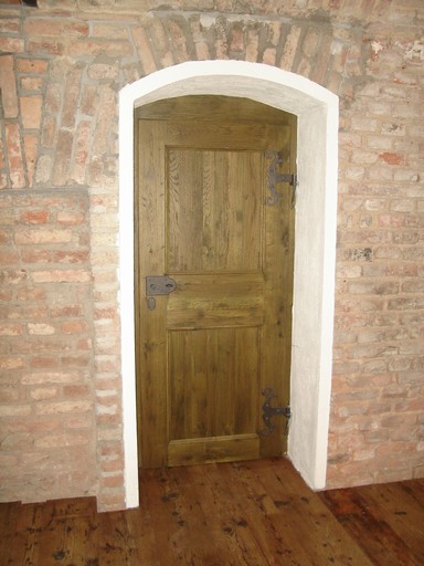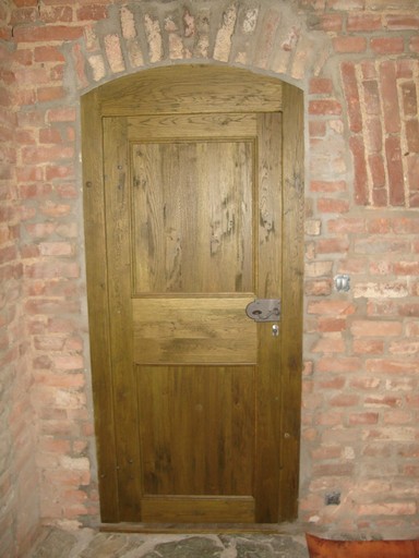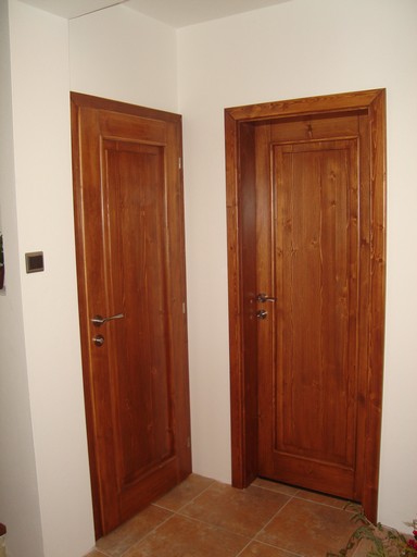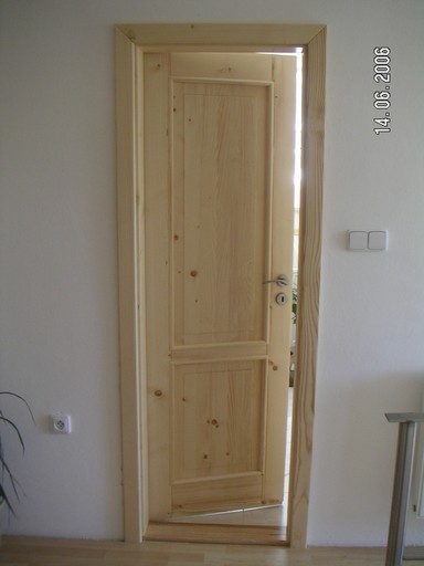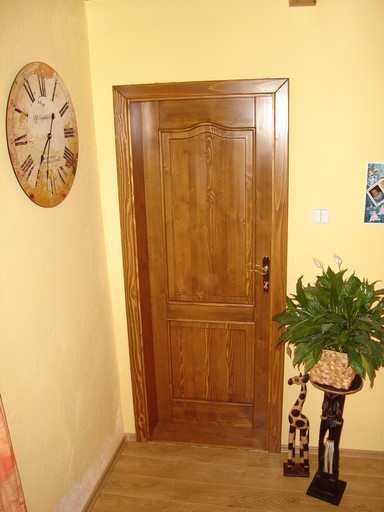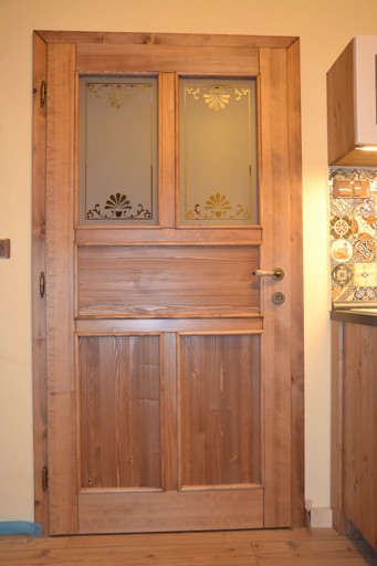 Dveře z masivu s kartáčovanou výplní, mořené.
