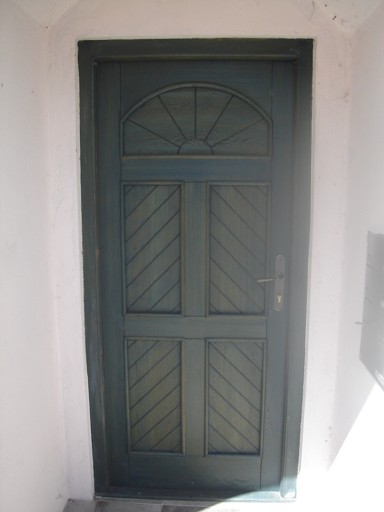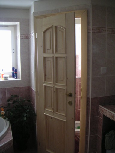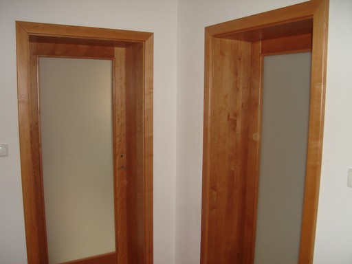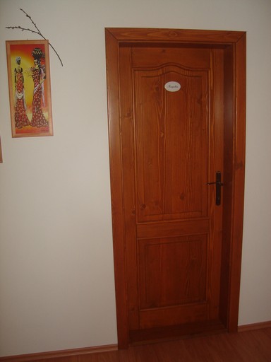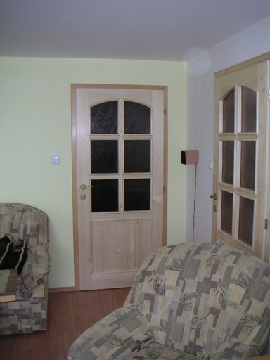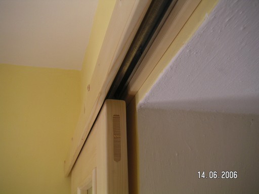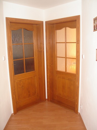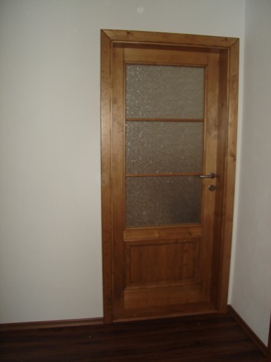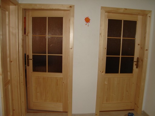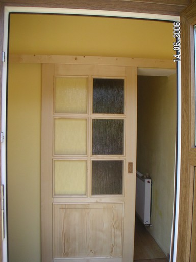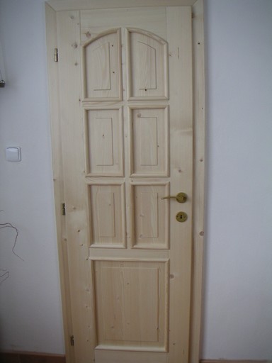 Posuvné smrkové dveře - přírodní, lakované. Detail